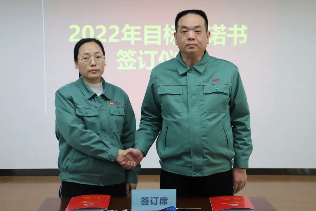 隨后,總經(jīng)理朱貴州和各副總簽訂目標(biāo)承諾書,各主管副總和部門負(fù)責(zé)人簽訂目標(biāo)承諾書,為實(shí)現(xiàn)戰(zhàn)略決策,明確奮斗方向,夯實(shí)干部職責(zé),高標(biāo)準(zhǔn)完成目標(biāo)打下了堅實(shí)的基礎(chǔ)!