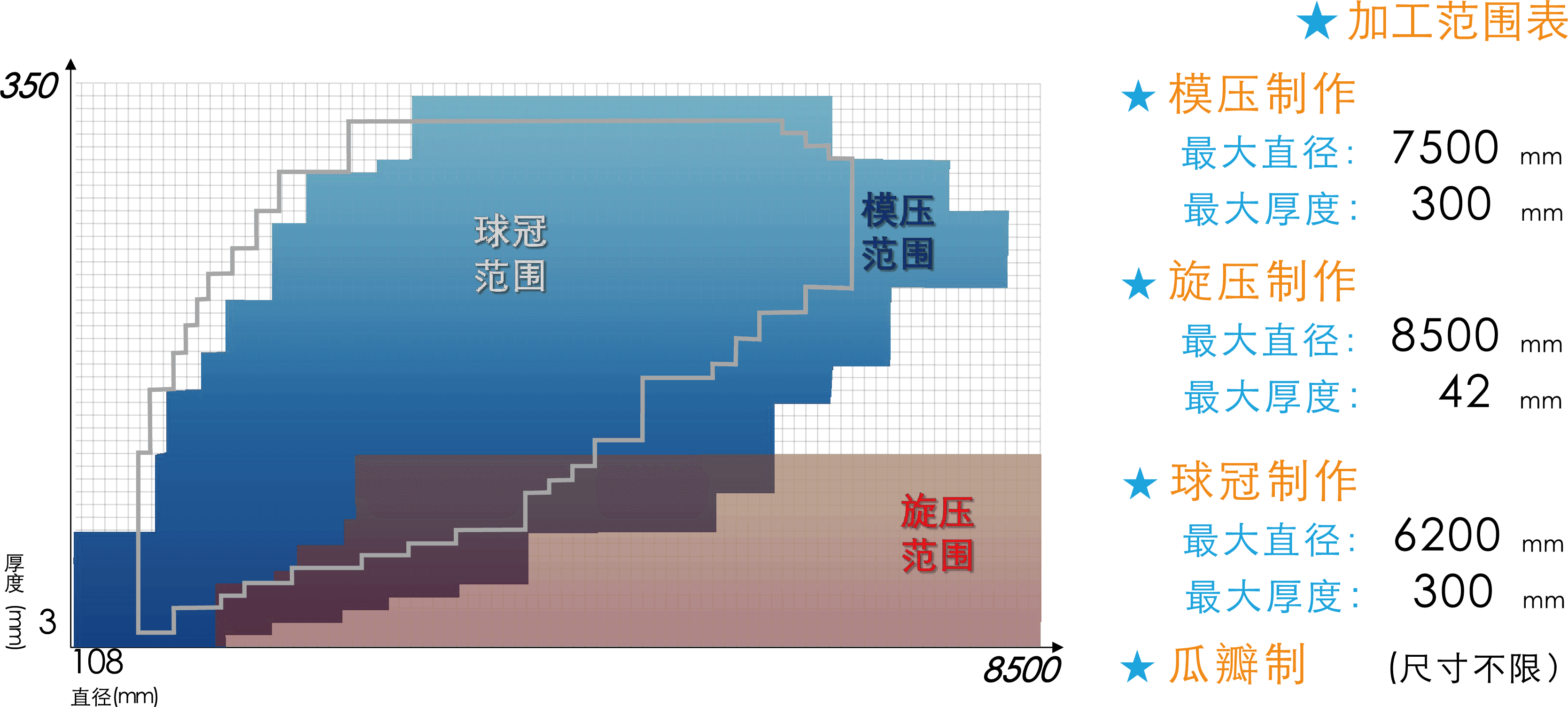 | 適宜規格 | 標準品 | 標準品 | ·板材薄 ·直徑較大 | ·板材厚 ·直徑大 |