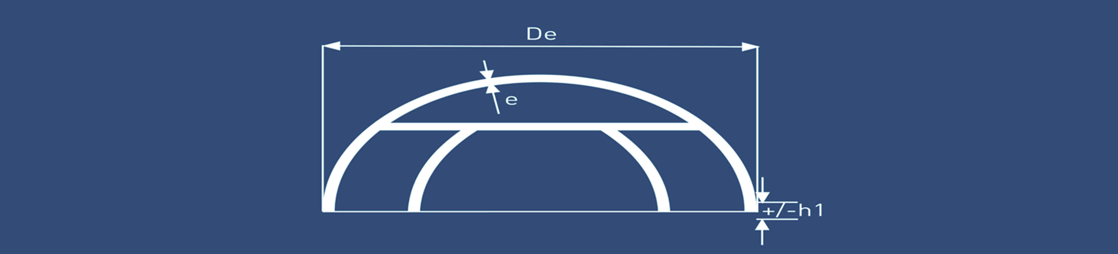 De:外徑e:投料厚度SR:半球半徑h1:直邊高度