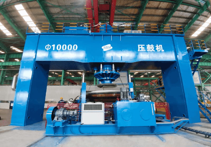 近日,神州精工華東基地(安徽公司)最大承載重量50噸的10米打鼓機(jī)一次性試機(jī)成功!其主缸直徑1米,壓力噸位2千噸,最大可制作直徑10000mm碟形封頭和直徑9000mm的標(biāo)準(zhǔn)橢圓封頭。